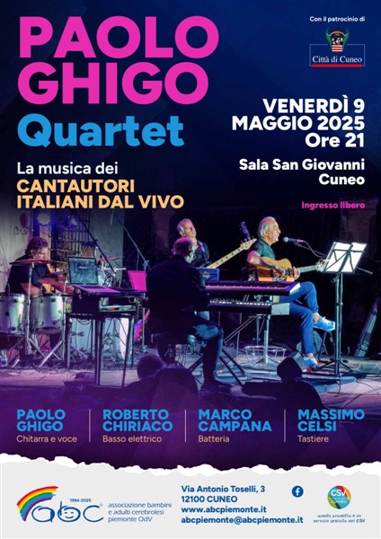 PAOLO GHIGO QUARTET che si terrà il 9 maggio alle ore 21 presso la